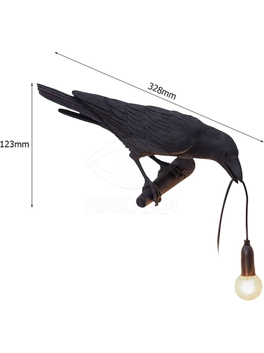 Настенный светильник "Raven" выполнен в форме вороны и станет интересным элементом интерьера. Его конструкция из ABS-пластика сочетает легкость и прочность, а компактные размеры (328 × 145 × 123 мм) позволяют разместить светильник даже в небольших пространствах.
